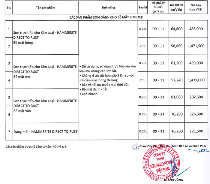 - Bảng giá sơn trên áp dụng cho màu nhạt nhất nhóm 1 và màu trắng.