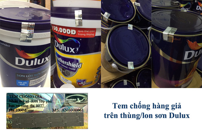 b. Vị trí dán tem chống giả trên thùng/lon sơn Dulux