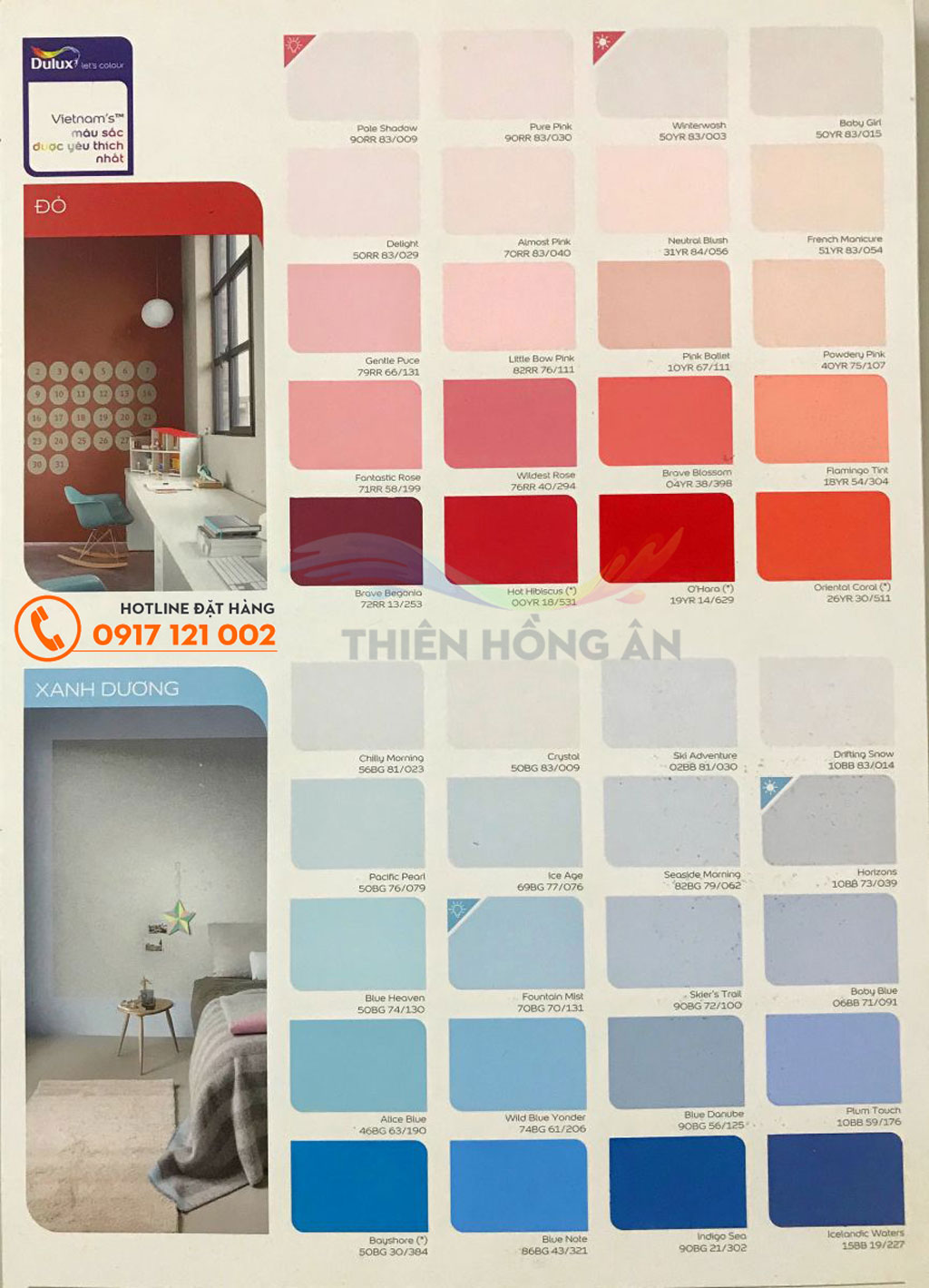 1. Nhóm Sơn Dulux màu Đỏ và Xanh Dương: