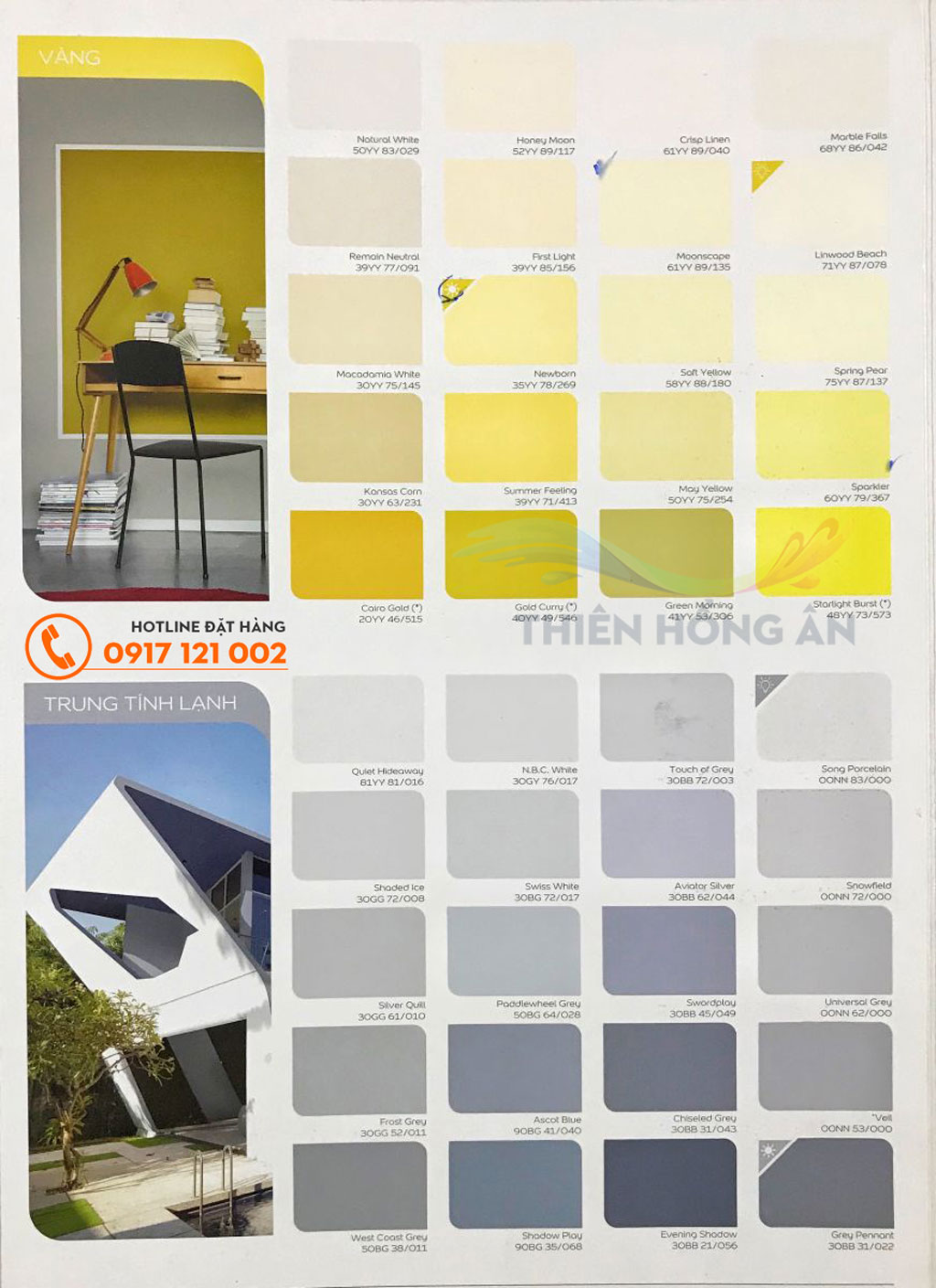 3. Nhóm Sơn Dulux màu Vàng và Trung Tính Lạnh: