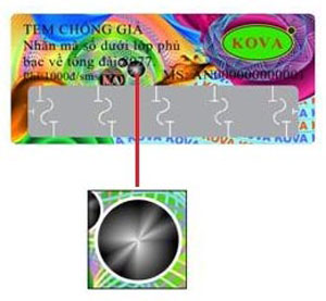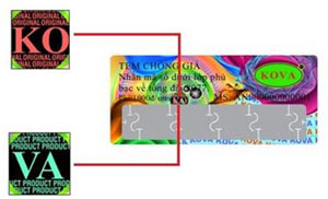 Để nhận biết tem Kova thật hay giả bạn cần sử dụng các loại đèn tia cực tím (bút/đèn soi laze bán ở trong hiệu sách) hoặc đèn soi tiền giả để kiểm tra.