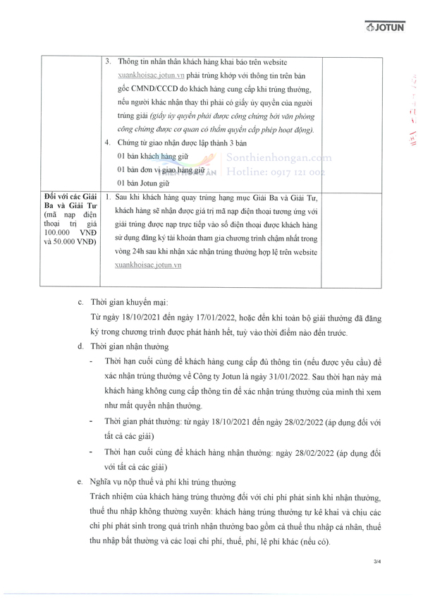 - Hình thức: vòng quay may mắn trên website: xuankhoisac.jotun.vn