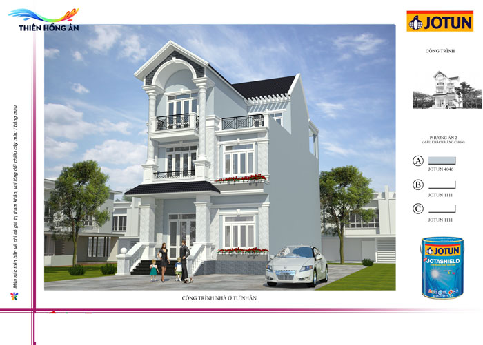Bước 2: Thiên Hồng Ân tư vấn cho khách hàng lựa chọn các tông màu sơn ngoại thất Jotun đẹp, hợp phong thủy – ngũ hành, sở thích của chủ nhà để thực hiện Phối màu 3D.